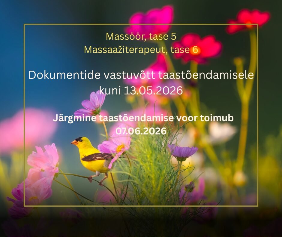 - vähemalt 2-aastane töökogemus massöörina alates eelmisest kutse taotlemisest;